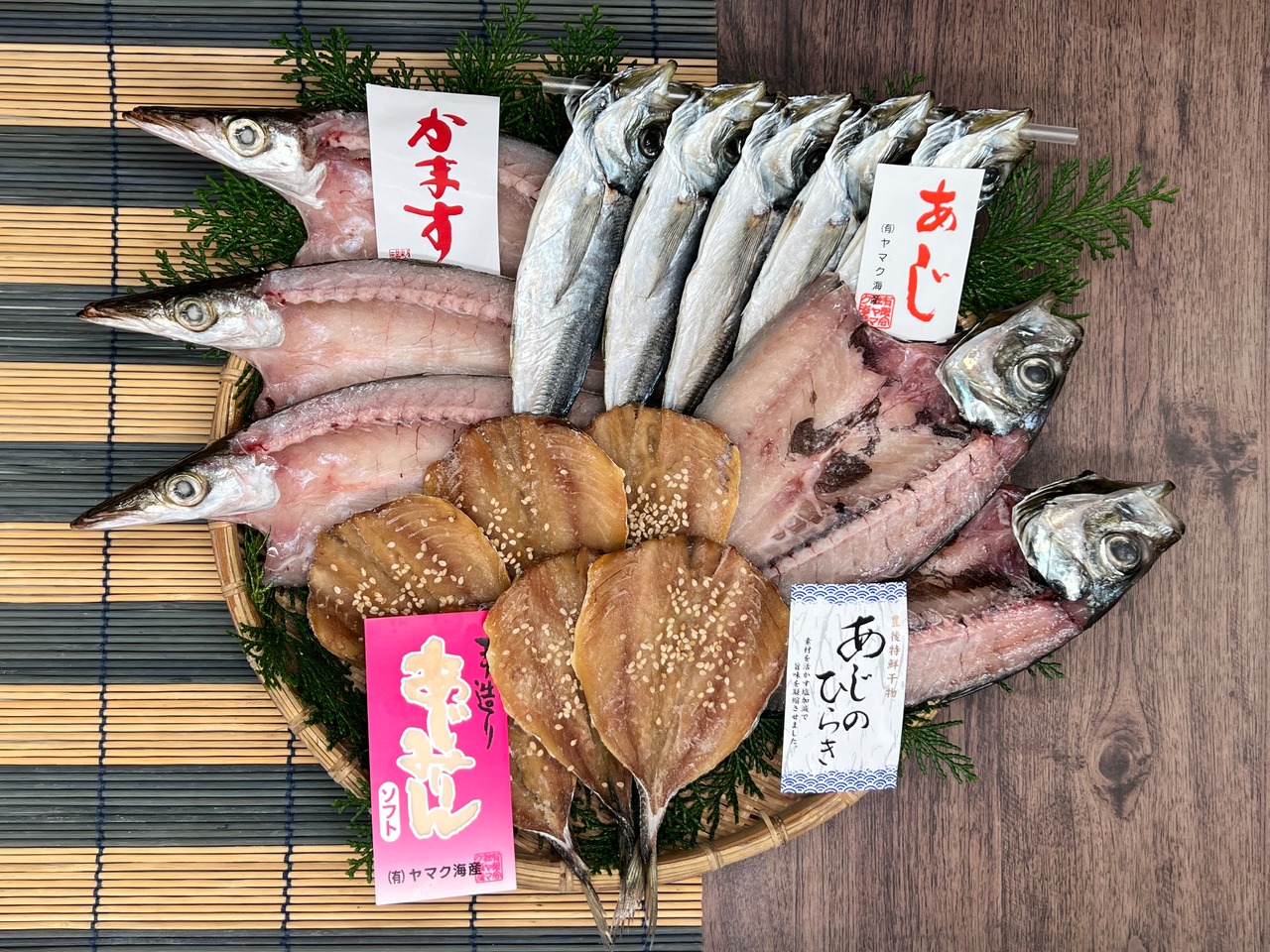 ・真あじ開き(2~3枚)・かます開き(2~3枚)・あじみりん干しソフト(4~6枚)・あじ丸干し(5尾)